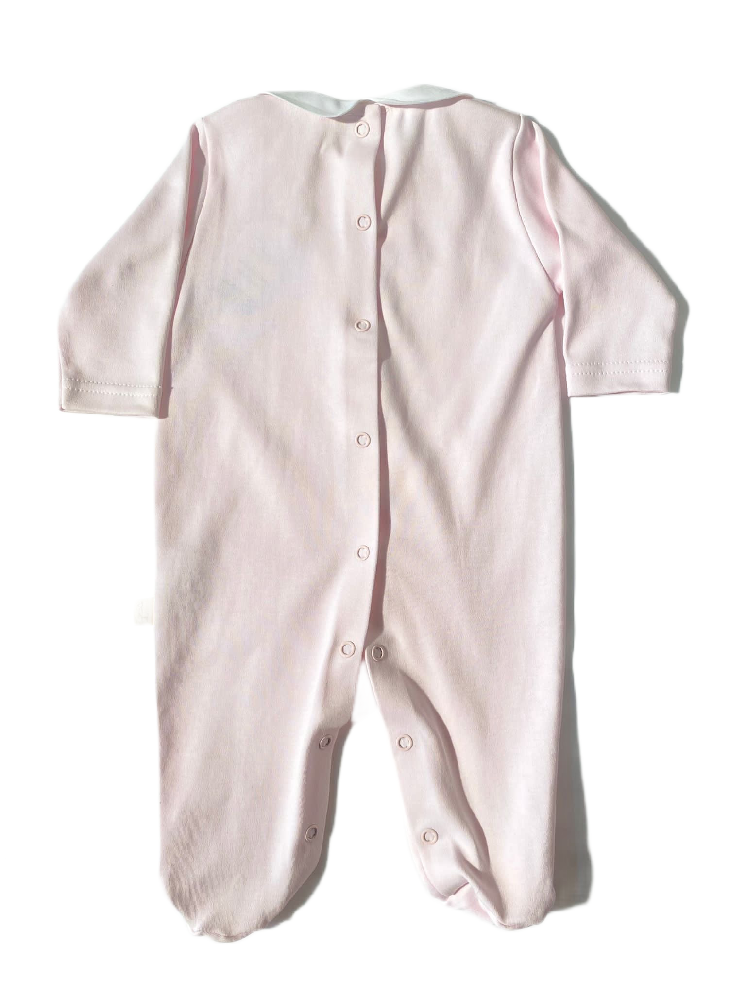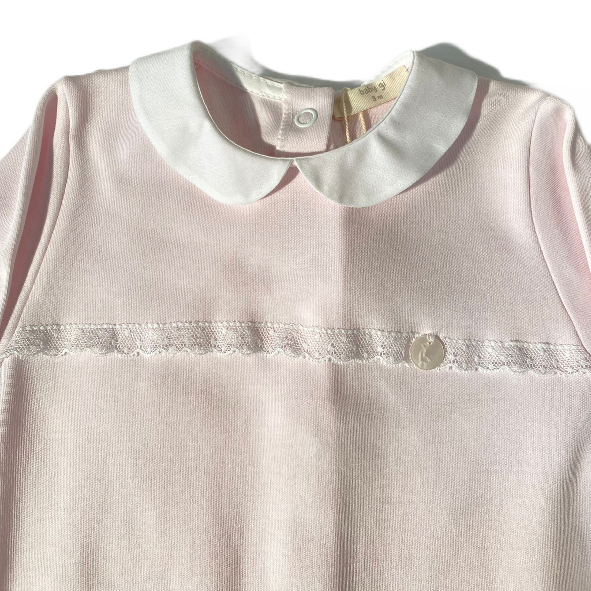 Trop mignon le petit pyjama de chez Baby Gi, en coton, avec le petit détail en dentelle.