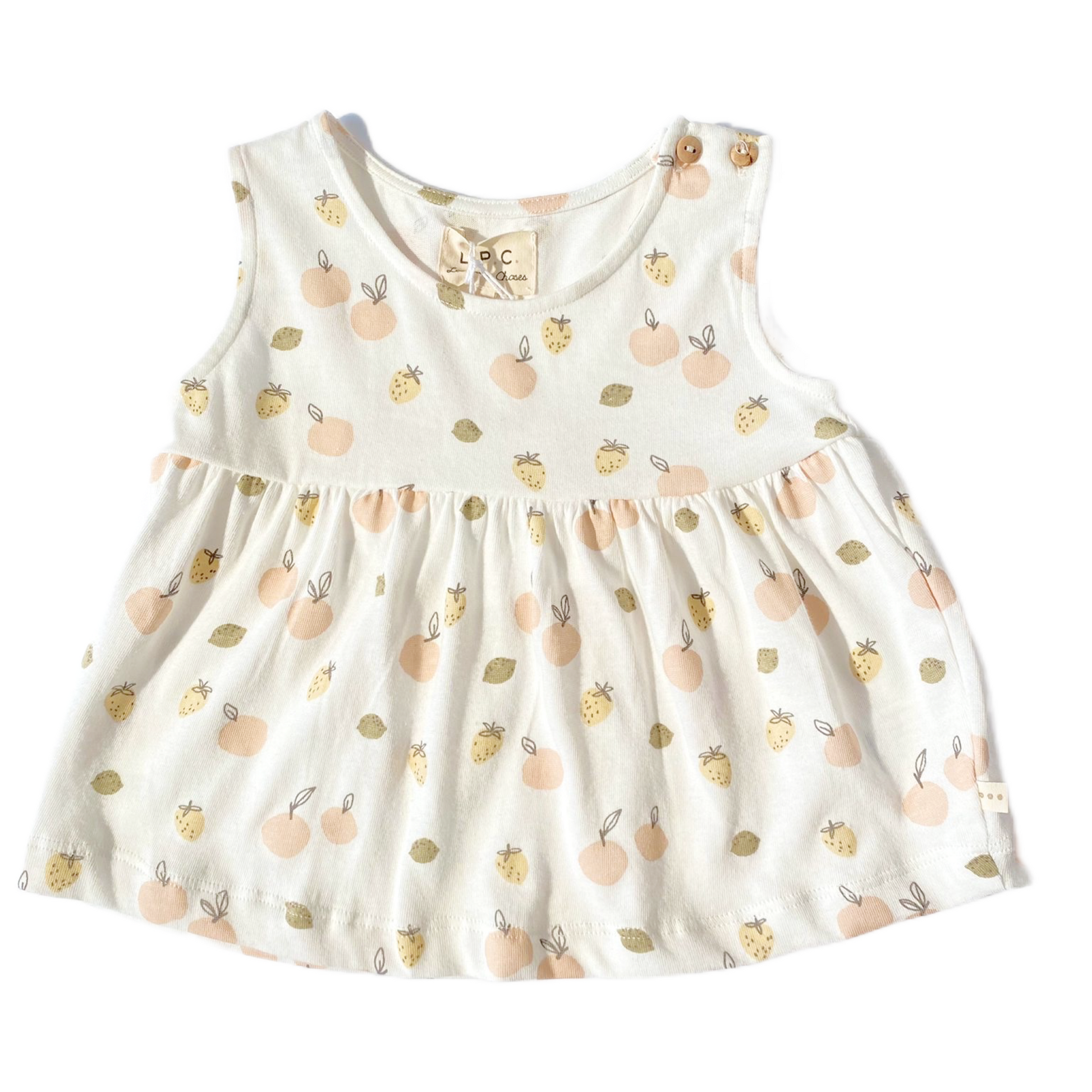 Adorable haut de la marque française, Les Petites Choses, en coton. L'un est avec des fleurs et l'autre avec des motifs de fruits. Beaucoup trop chou!