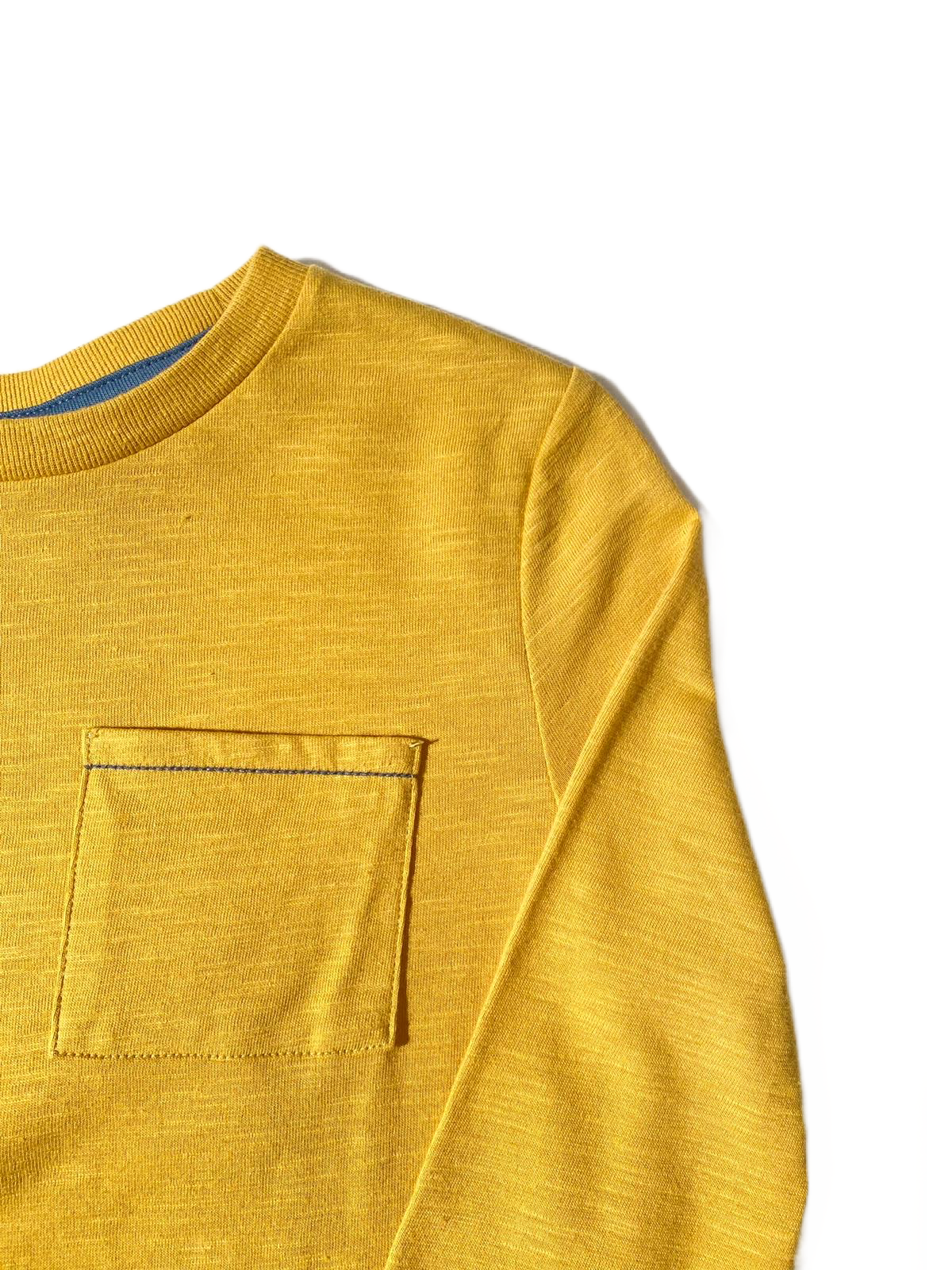 T-shirt manches longues jaune avec une petite poche sur le côté de la marque Knot.