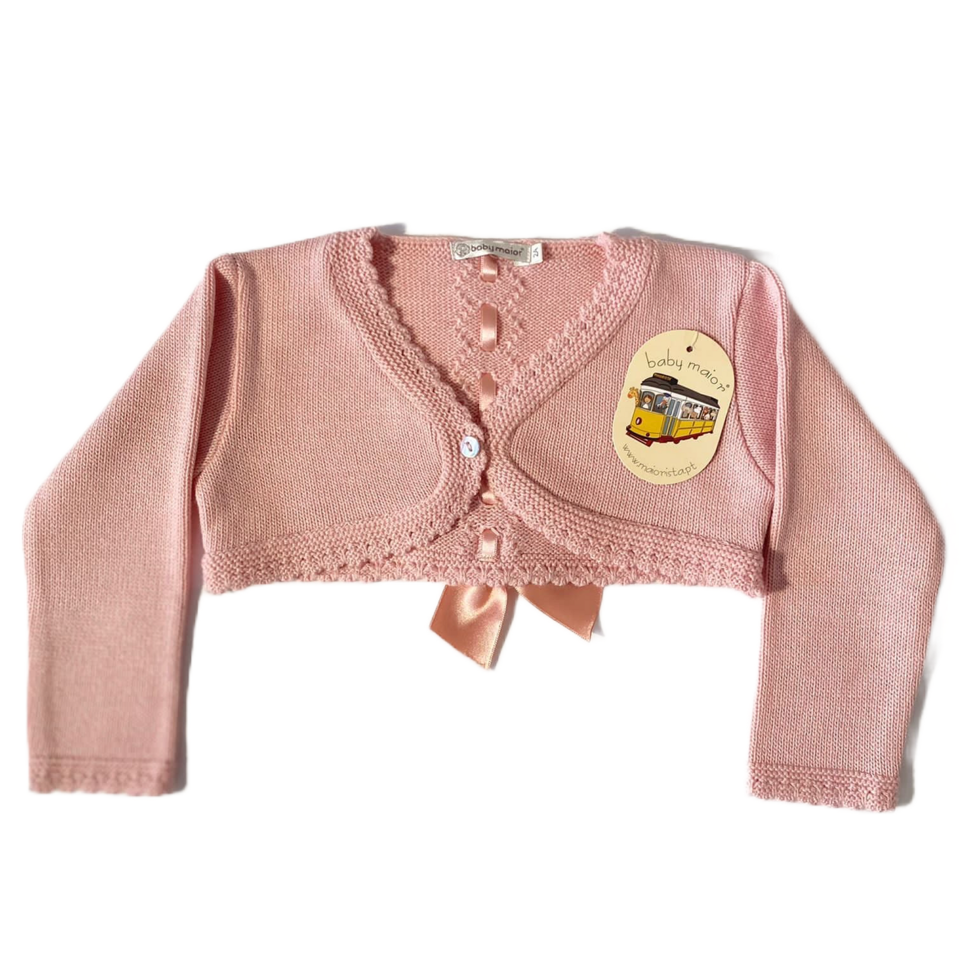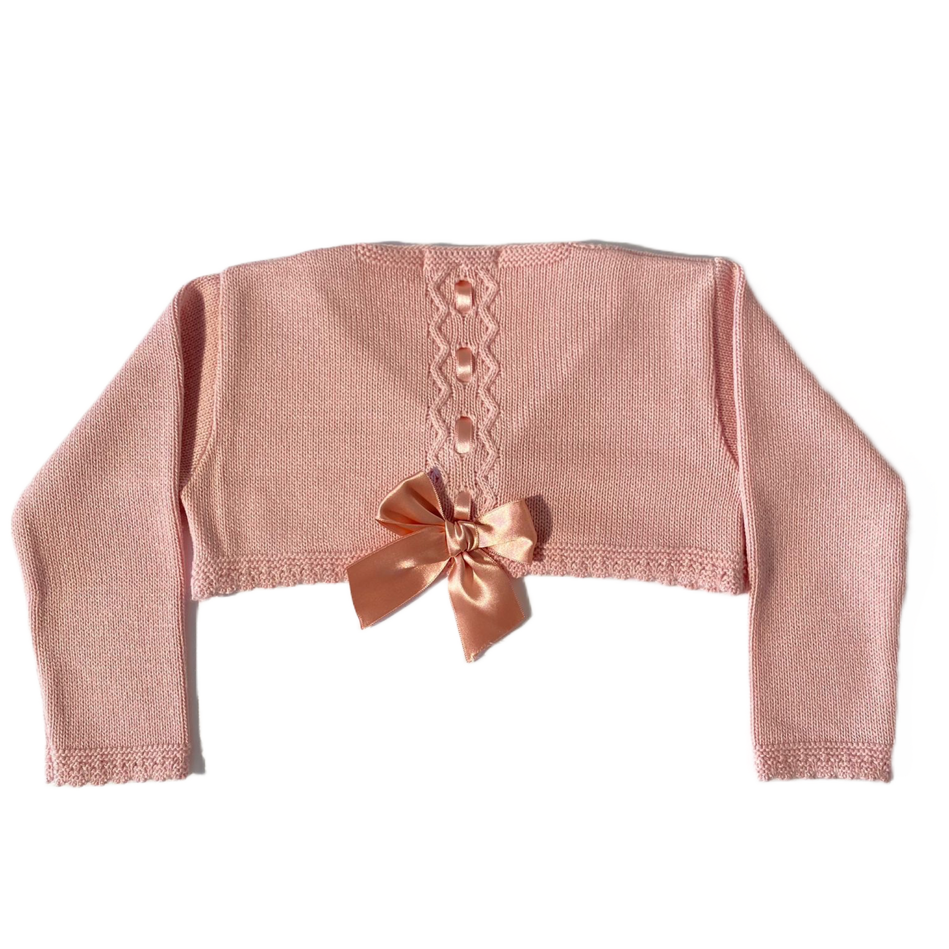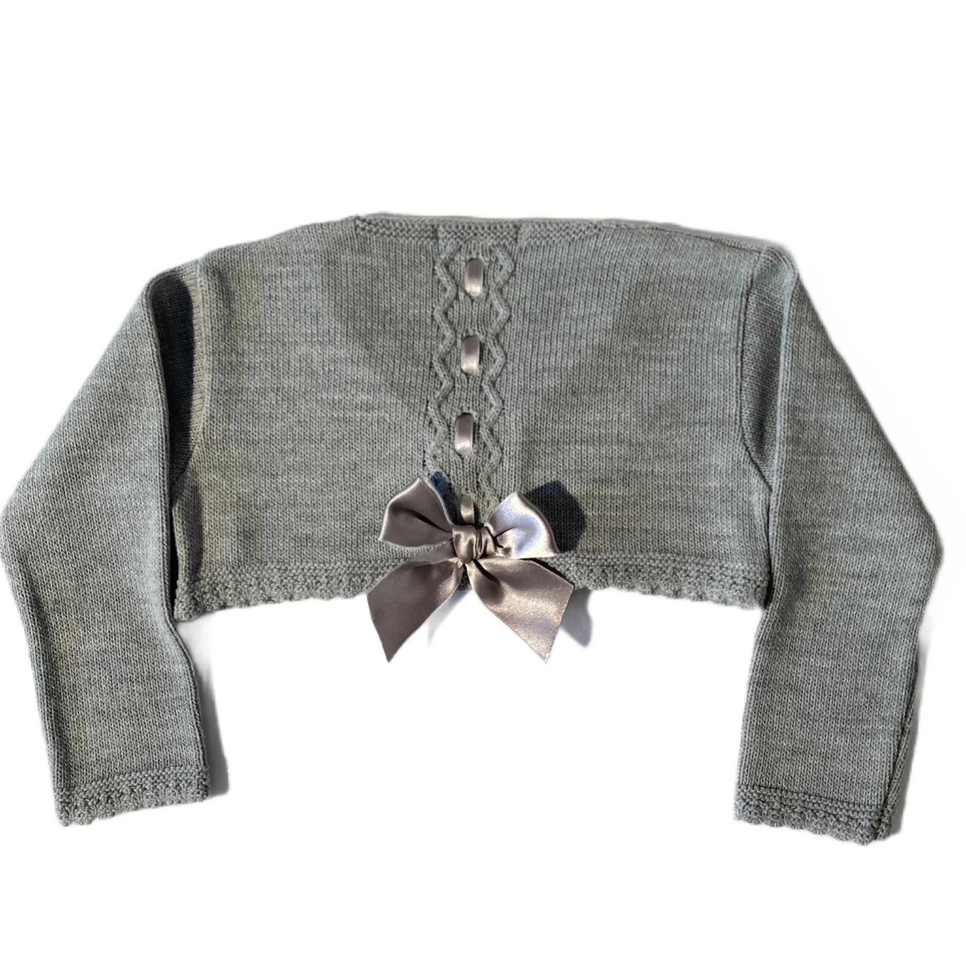 Boléro en maille avec un joli nœud de soie, parfait pour accessoiriser le look de votre enfant.