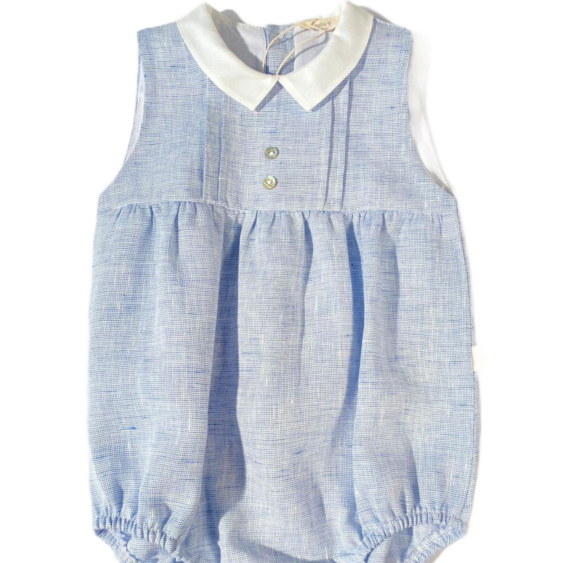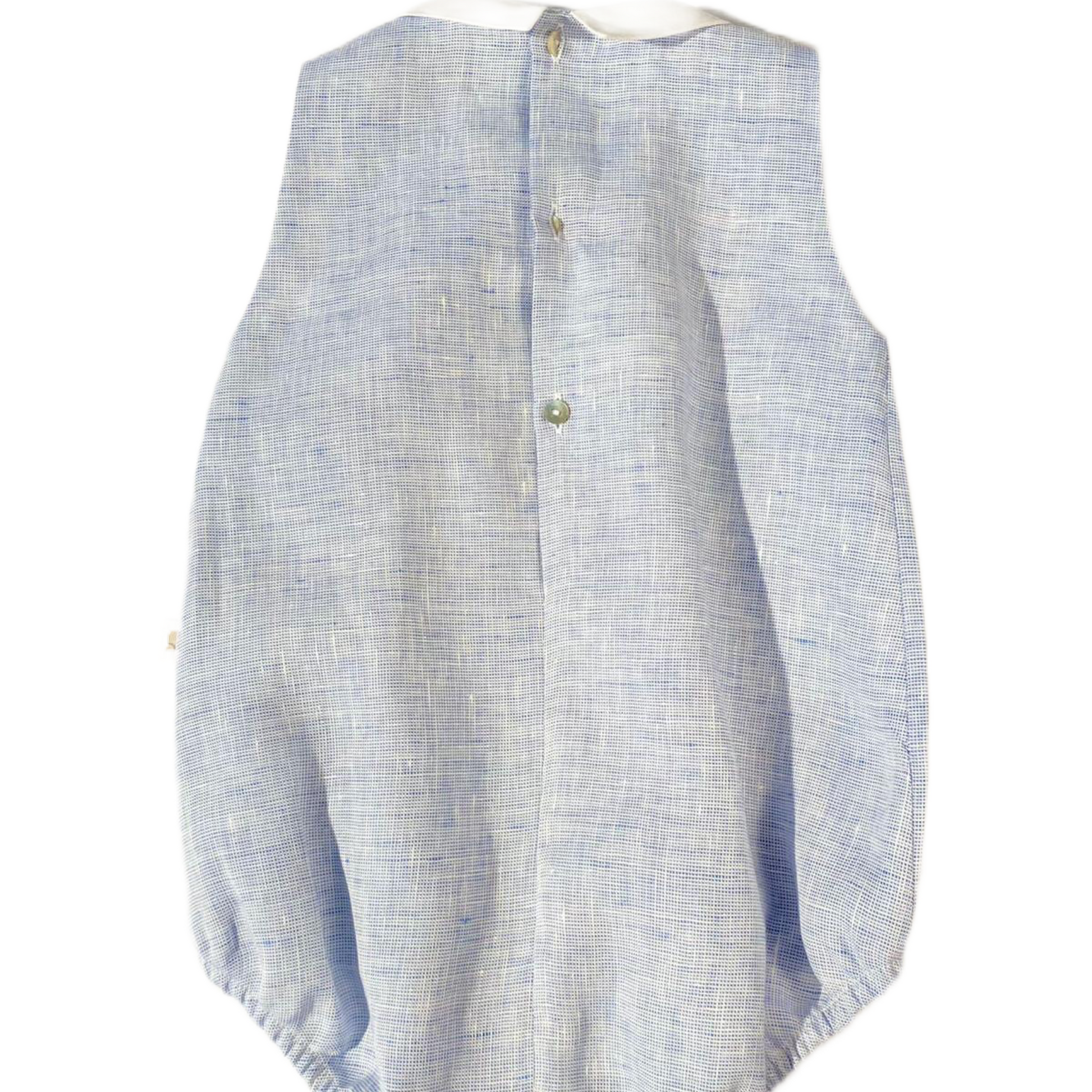 Élégante barboteuse en lin ! Vous pouvez, en été, montrer les petites gambettes de votre bébé ou en hiver, ajouter de jolis collants et un haut bien chaud.
