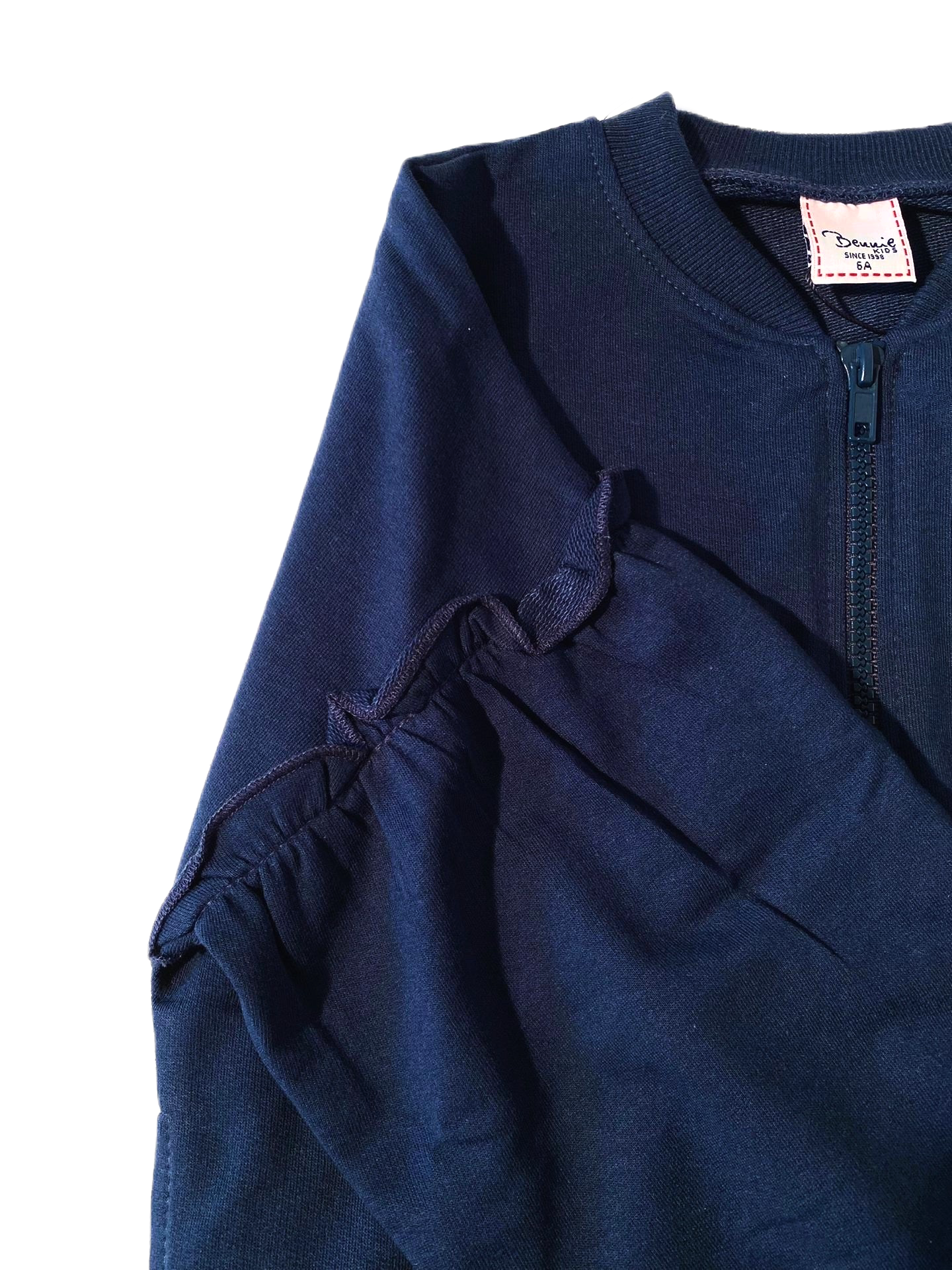 Le gilet aux manches bouffantes, couleur bleu marine très tendance, est l'idéal pour compléter un look.