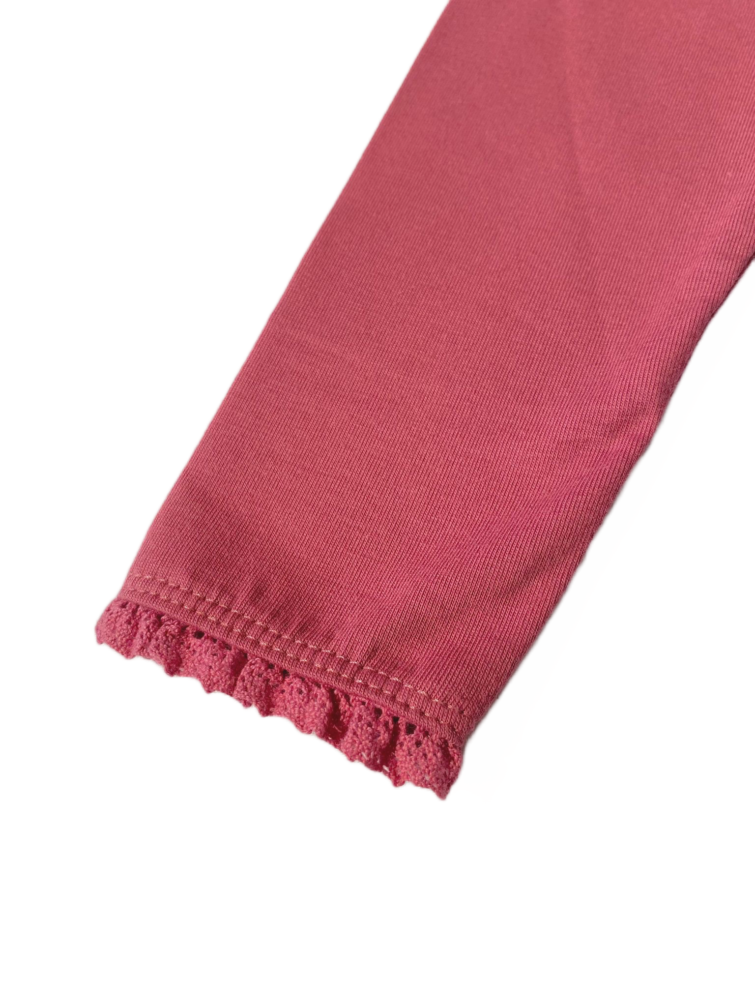 Confortable legging avec de la dentelle, disponible en rose et rouge.